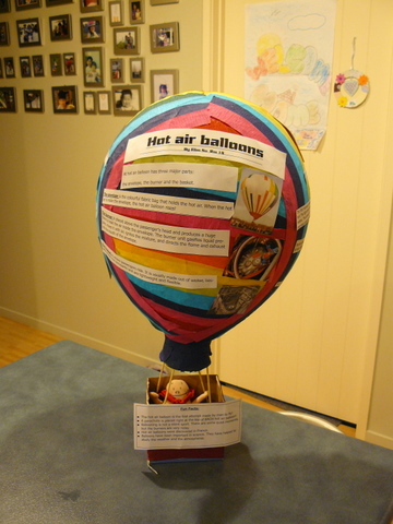 (以琳的作業是用四根竹籤綁起好撐起熱氣球,因為是要放在桌面上給大家看的。)